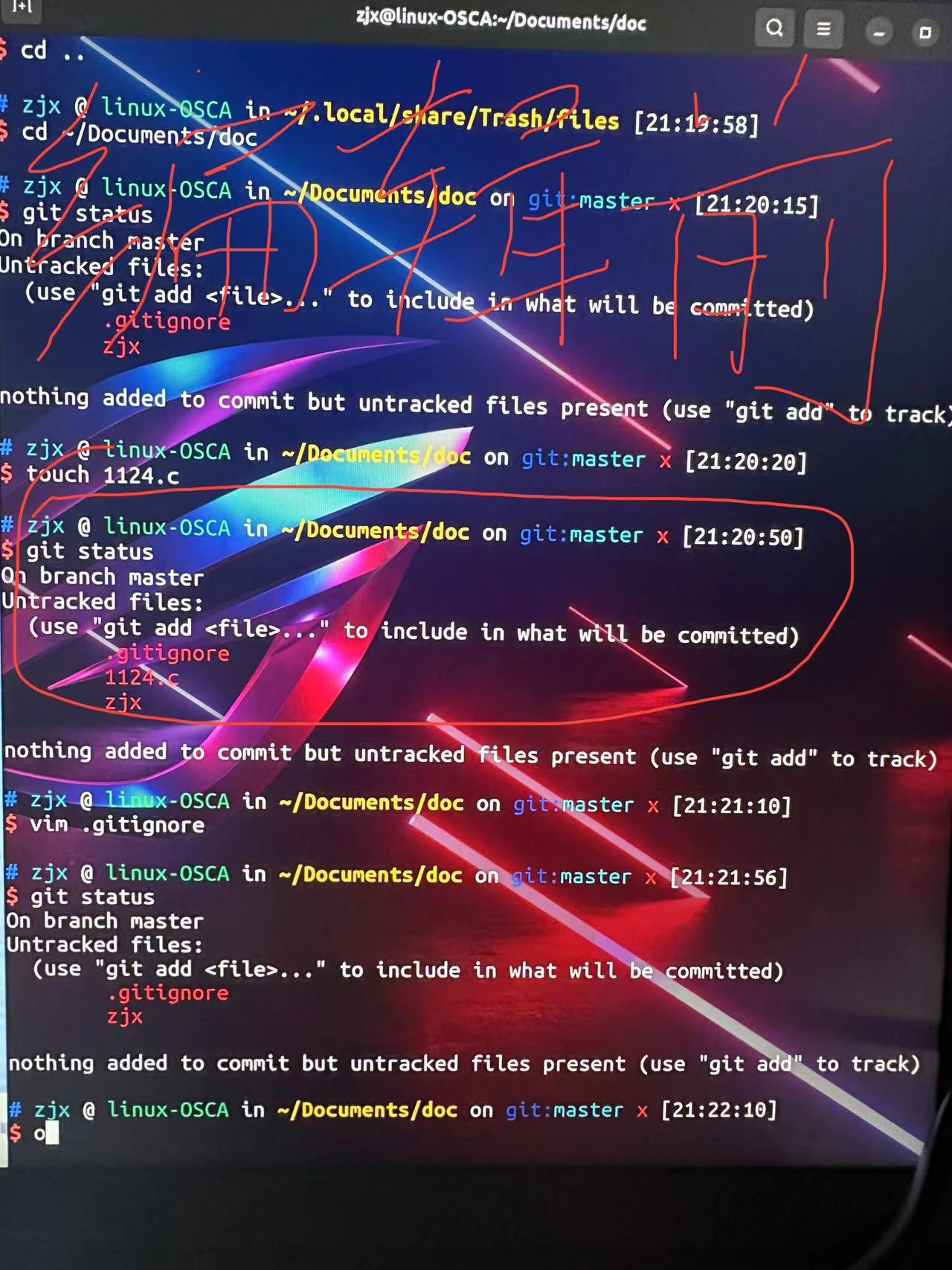 touch .gitignore 隐藏文件 .gitignore(linux下以.开头的文件都是隐藏文件)