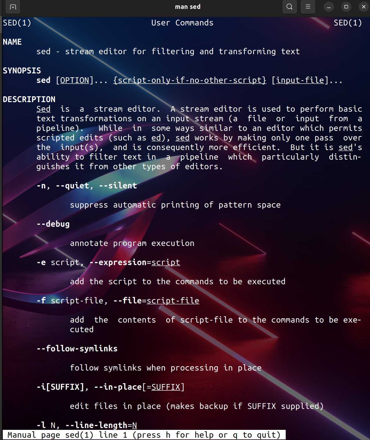 - 然后是为了看懂SYNOPSIS,先在OPTIONS中弄明白每个参数的含义,然后你通过刚刚学会的"/加关键词",学会了快速标记你想找的参数并搭配n来更快的找到。