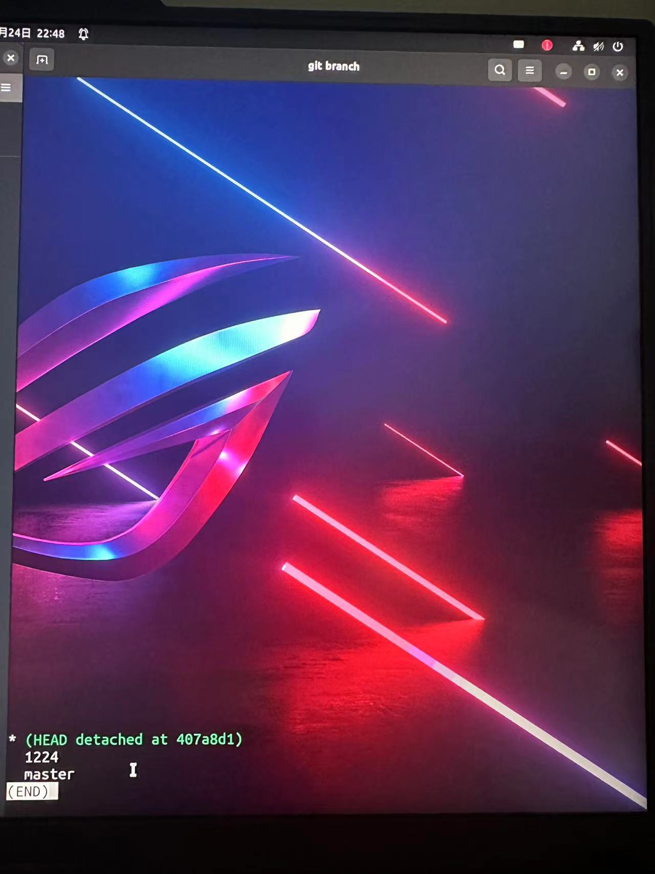 现在使用git checkout 407a进行读档,这时我将处于一个虚构的分支中,我可以查看407a存档的内容,也可以对内容进行修改,但是无法存档,需要使用命令git checkout -B 分支名来将修改结果保存到一个新的分支中,如果分支已存在,起内容将会被覆盖。